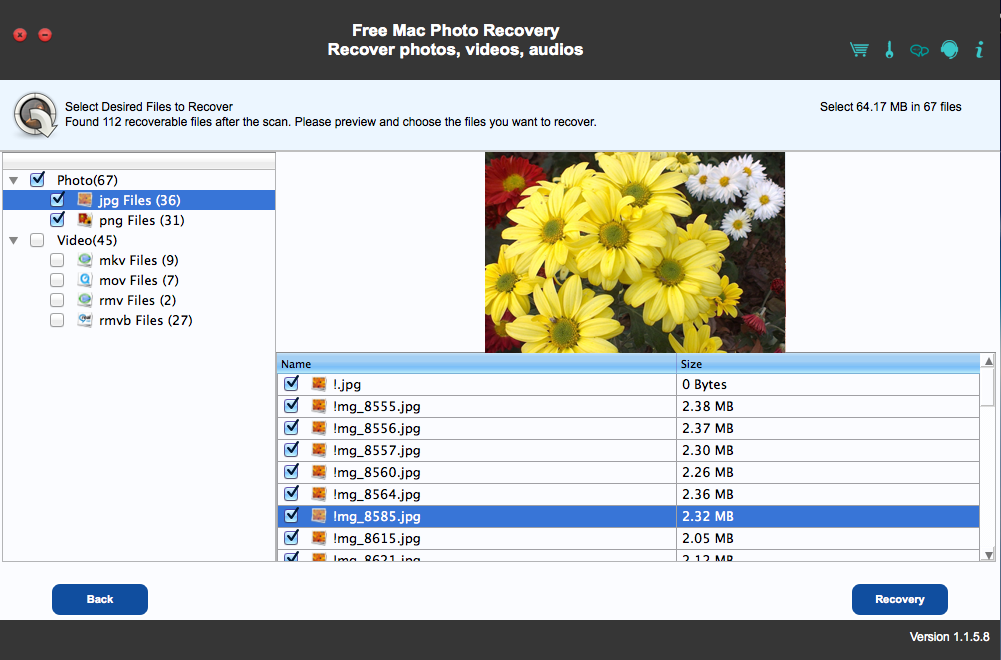When scanning is completed, all the found files will be listed in the scan results. You can preview the scanned files and mark the ones you want to recover. Then click "Recovery" to get them back.